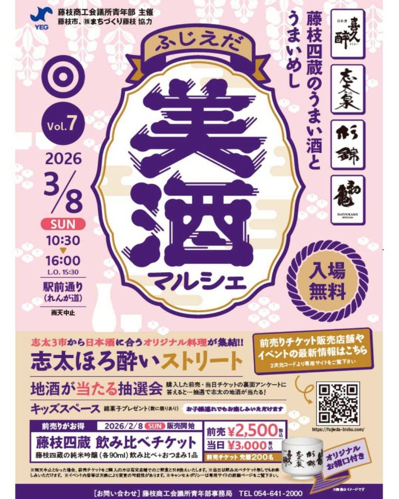地域の魅力を多くの方に楽しんでいただくイベント 「美酒マルシェ」3月8日藤枝駅前通り(れんが道)にて開催いたします。